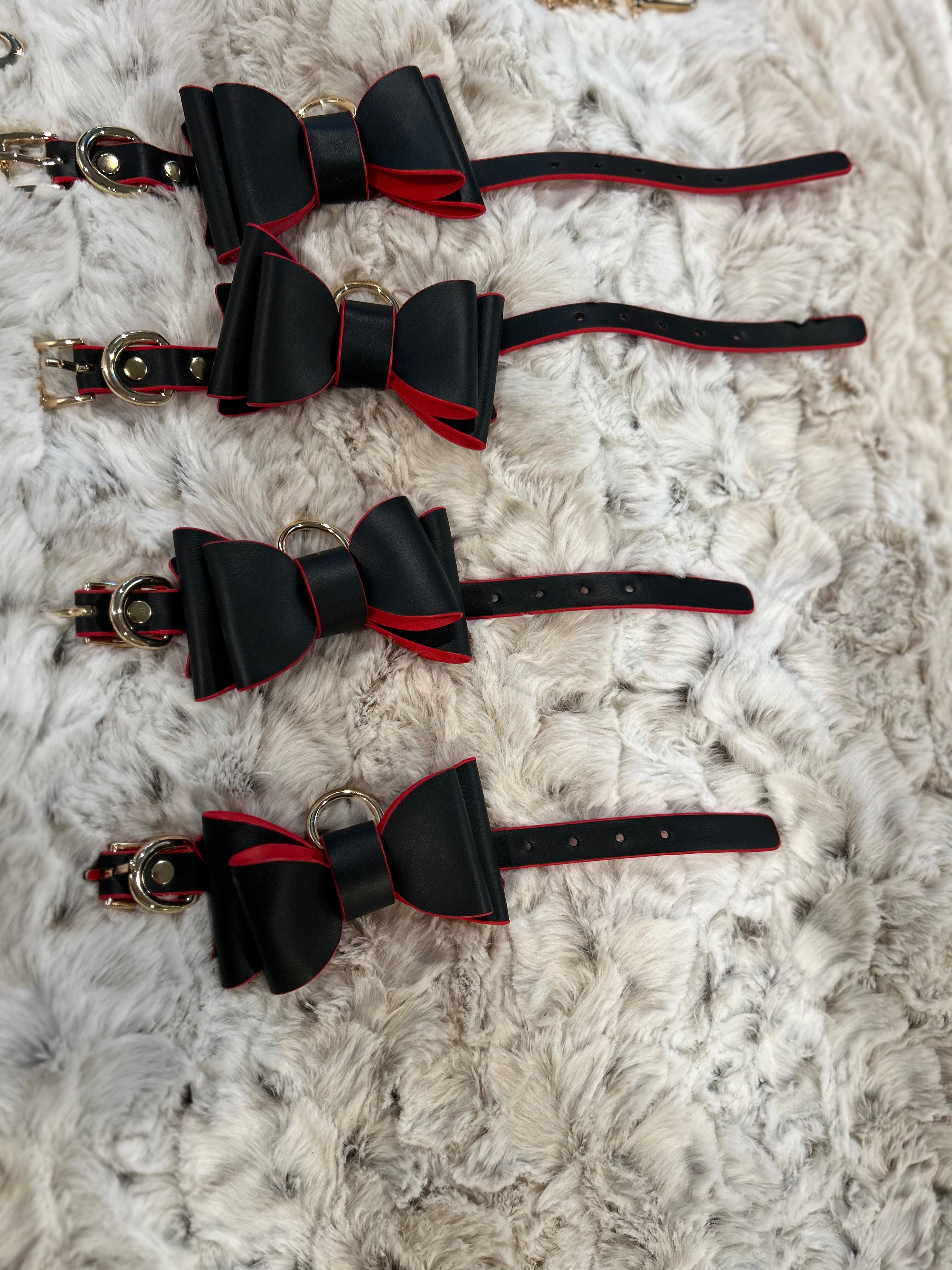 The adjustable leather cuffs steal the show with playful red and black bow accents—smart, sexy, and irresistibly cute. Every piece fits neatly into the sleek, discreet carrying case, making it easy to transport your kinky essentials wherever adventure calls. The Bow Tie Kinky Set: portable, playful, and designed to keep things delightfully naughty.